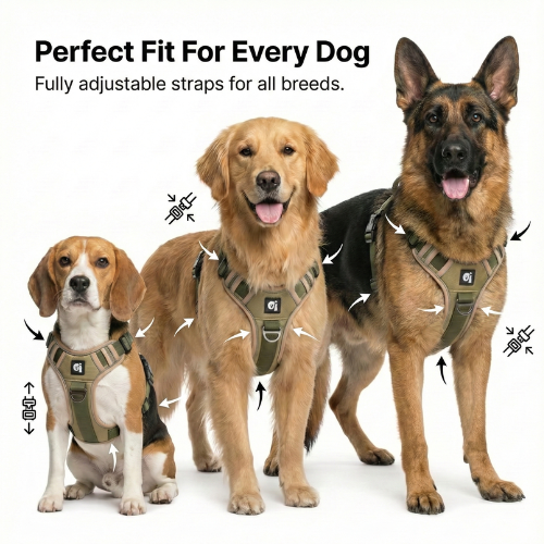 Yes — the harness is fully adjustable at multiple points and fits small, medium, and large breeds. If your dog is between sizes, we recommend sizing up for the best comfort.